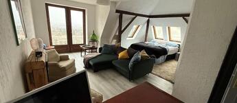 A beépített padlástér tovább növeli az ingatlan értékét: két szoba, két fürdőszoba, egy háztartási helyiség és egy 6 nm-es panorámás erkély került kialakításra, ahonnan a környező zöldövezet látványa minden napszakban különleges élményt nyújt.