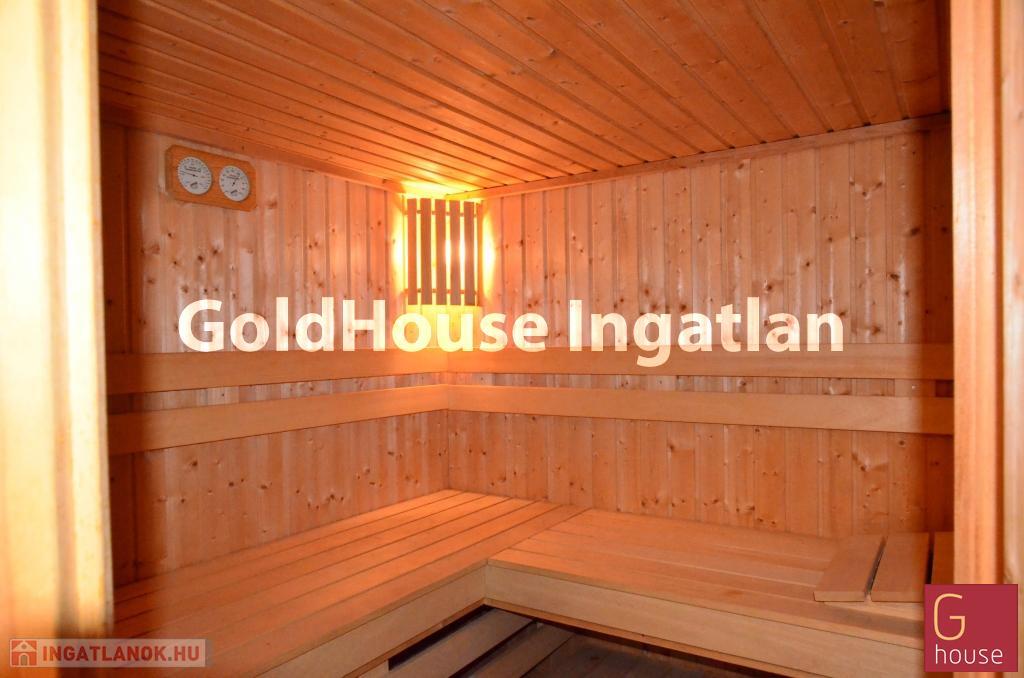 Szuterén:40 nm alapterületű lakrész, kertkapcsolatos, 1 szoba, fürdőszoba és szauna.