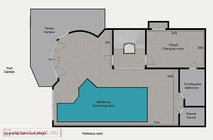 Az otthoni pihenőidőnket a wellness szinten is tölthetjük, ahol medence szauna és hozzájuk tartozó öltöző és fürdőszoba is található.