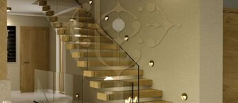 A szintek között egyeneskarú lépcső és egy KLEEMANN személylift biztosít kényelmes közlekedést