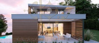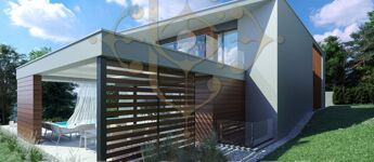 A szabályosan különálló épületként tervezett villa tökéletesen illeszkedik a természetes lejtésű telekhez. A három szintre tagolt elrendezés összesen 318,69 nm nettó hasznos alapterületet biztosít, tágas teraszokkal és lenyűgöző tetőteraszos élménnyel kiegészítve.