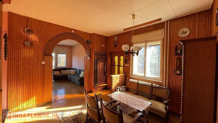 A földszinten találunk egy központi étkezőt, egy tágas, utcai irányba tekintő, erkélykapcsolatos nappalit, egy hátsó kertre néző szobát, egy kertkapcsolatos konyhát, és egy zuhanyzóval és szeparált wc-vel rendelkező fürdőszobát.