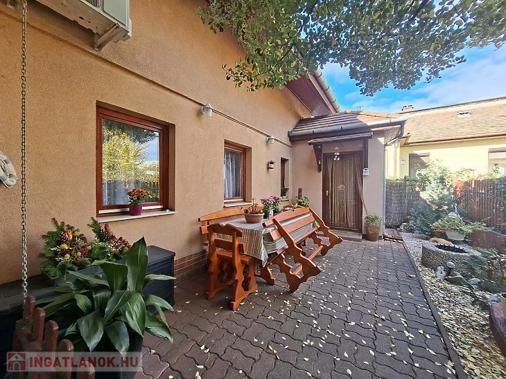 A kert rendezett, autóbeállóval és garázzsal rendelkezik. Az elhelyezkedés kiváló: csendes, barátságos környék, mégis közel a közlekedéshez, iskolákhoz, boltokhoz.