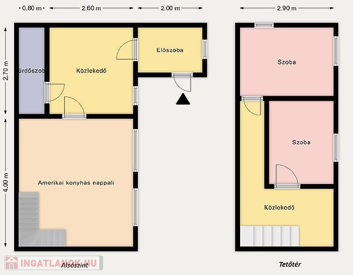 • tetőtérben 2 félszoba, további bővítési lehetőséggel
