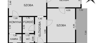 Nappali, 2 szoba, konyha, előszoba, fürdőszoba és terasz áll rendelkezésre jelenleg. Teljeskörű műszaki és esztétikai felújítás szükséges.
