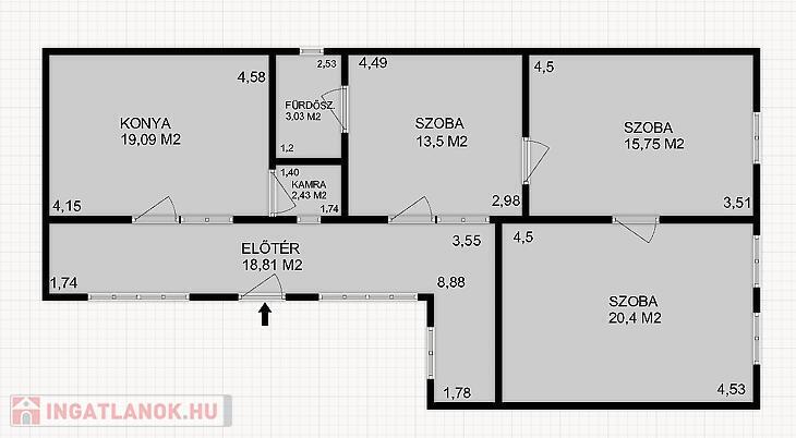 Tágas előtér, konyha, 3 szoba, kamra és fürdőszoba áll rendelkezésre. Teljes körű műszaki és esztétikai felújítást igényel. A ház észben alápincézett. A kertben több tároló, melléképület van, autóbeállási lehetőség is adott.
