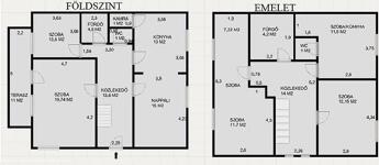 A földszinti részen előszoba, tágas nappali, étkezős konyha, 2 szoba, fürdőszoba, mellékhelyiség és terasz található, illetve egy kamra. Az emeleten közlekedő, 3 szoba (egyik konyhává alakítható), fürdőszoba és külön mellékhelyiség került kialakításra. A nyílászárók műanyagok hőszigeteltek, redőnnyel vannak ellátva. A belső ajtók, illetve a teljes villanyvezeték kicserélésre került. A fűtést gáz cirkó kazán biztosítja, a nappaliban egy hűtő-fűtő klíma is fel lett szerelve. A házon kb. 5 cm-es szigetelés található. A tető szerkezete LINDAB lemeztető és cserepes.