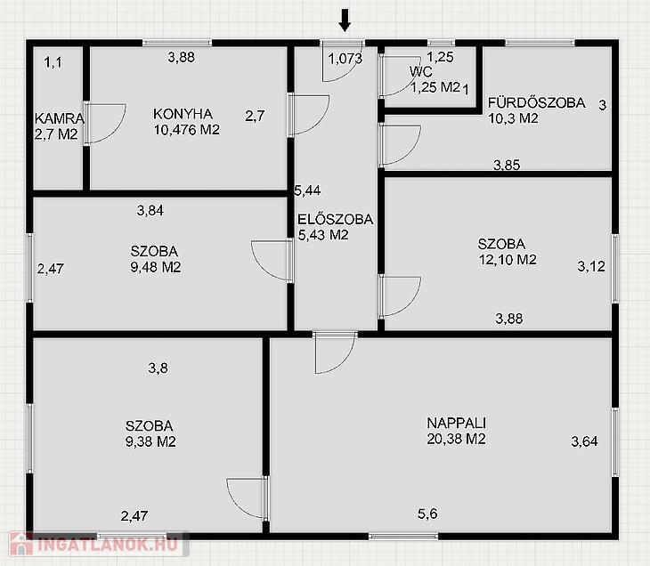 Konyha, 2+ 2 félszoba, fürdőszoba, kamra, mellékhelyiség, pince, padlás került kialakításra.