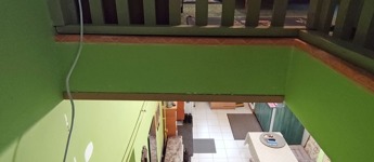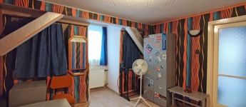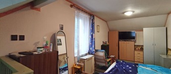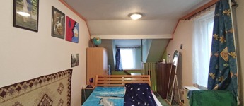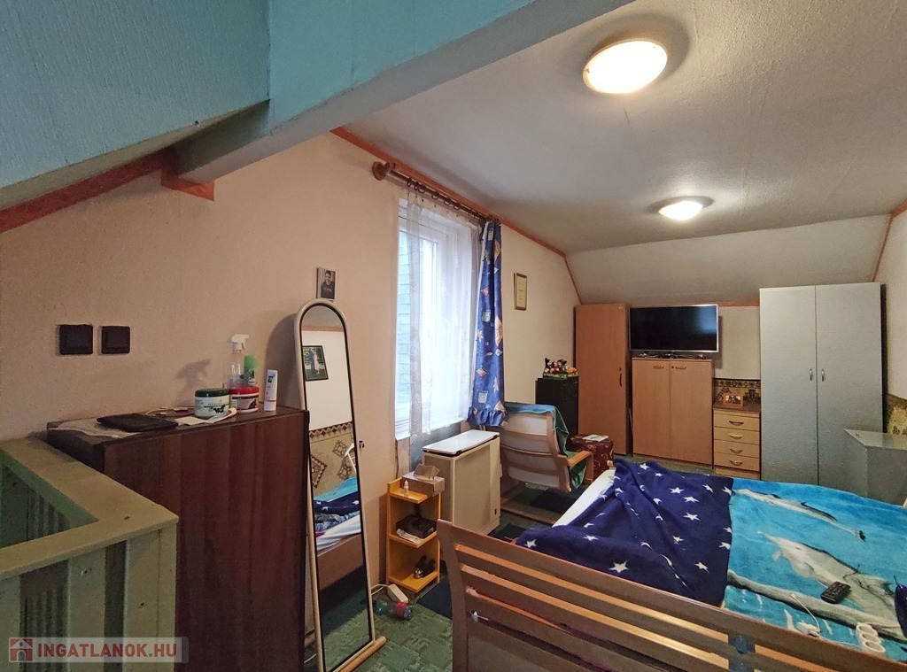 A házból kilépve az udvaron szemben találjuk a 20 nm alapterületű, különálló, kétszintes üzlethelyiséget, amely most lakásként van hasznosítva. Belépve egy amerikai konyhás bútorozott, gépesített, étkezős nappaliba érkezünk. Innen lépcső vezet a felső szintre, mely jelenleg hálószobaként funkcionál. A lépcsővel szemben nyílik az épített zuhanyzós, toalettes, 2 nm-es fürdőszoba. Itt a fűtést gázkonvektor biztosítja. Az udvaron tovább haladva a családi ház folytatásában találjuk a tárolókat, az elsőben kapott helyet a fűtést biztosító gázcirkó és egy vegyes tüzeléses kazán. A tárolókkal szemben, az udvar másik oldalán egy fémvázas, fedett rész került kialakításra.