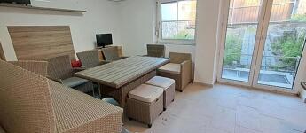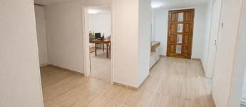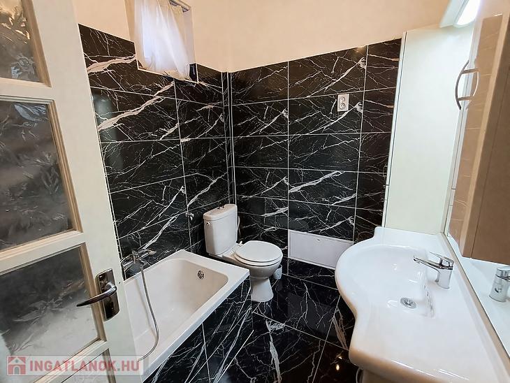 A félszuterén rész 82 m2-es: 3 szoba, konyha, kamra, közlekedő, fürdőszoba és a kazánhelyiség áll rendelkezésre. Ez a rész irodaként funkcionált, jelenleg is bérlik.