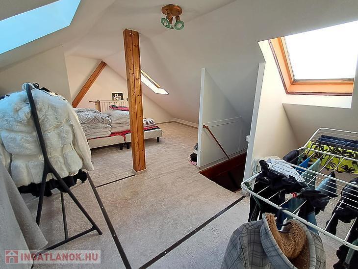 A tetőtérben jelenleg egy tágas 22 m2-es szoba van, de ebből könnyen 2 szobát lehet kialakítani, illetve egy fürdőszoba is helyet kapott itt.