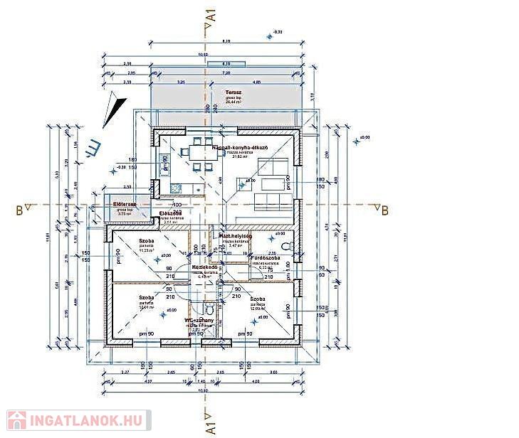 A ház egy 32 m2-es amerikai konyhás nappalival, 3 külön nyíló szobával, előszobával, közlekedővel, 2 fürdőszobával rendelkezik, az egyikben fürdőkád, a másikban pedig egy zuhanyzó kap majd helyet. A nappaliból nyílik egy 26 m2-es terasz is. A fűtés hőszivattyúval történik majd, padlófűtéssel. Az ablakok műanyag 3 rétegű hőszigetelt nyílászárók, alumínium elektromos redőnyökkel, és szúnyoghálókkal felszerelve. Az épület vasbetonfödémmel fog rendelkezni, a tető pedig Bramac cserepekkel lesz fedve. Az épület 15 cm-es grafit szigetelést kap és elő lesz készítve klímaberendezések, kaputelefon, választható burkolatok, szaniterek, belső ajtók, és riasztórendszer telepítésére.