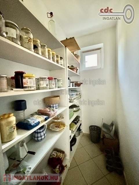 Az alsó szinten egy tágas nappali, étkező és konyha, kamra, 2 külön nyíló háló található, valamint egy fürdő és külön wc.