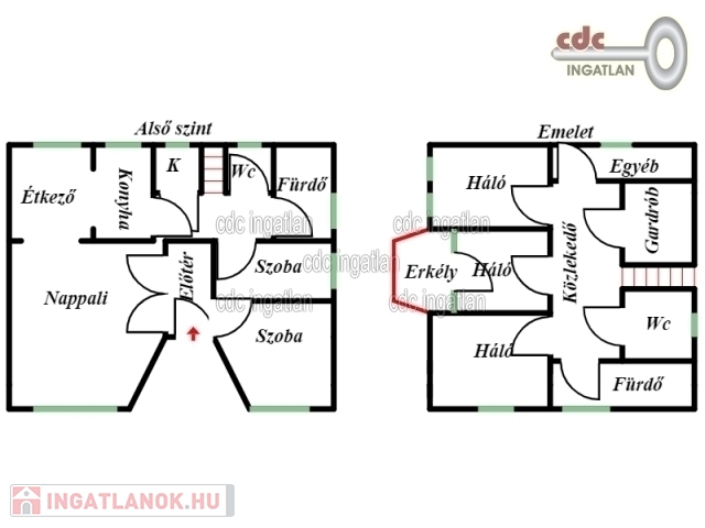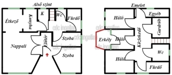 Az emeleten 3 háló, fürdő+wc, gardrób és dolgozó szoba.