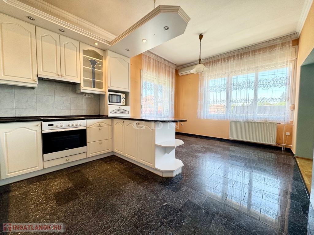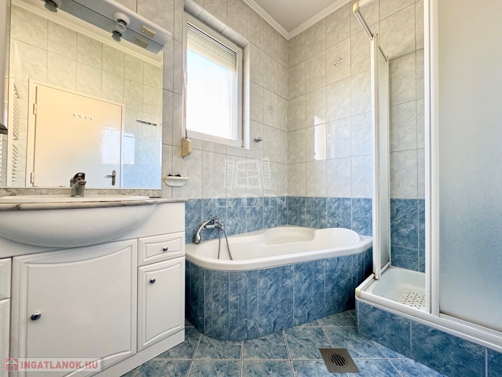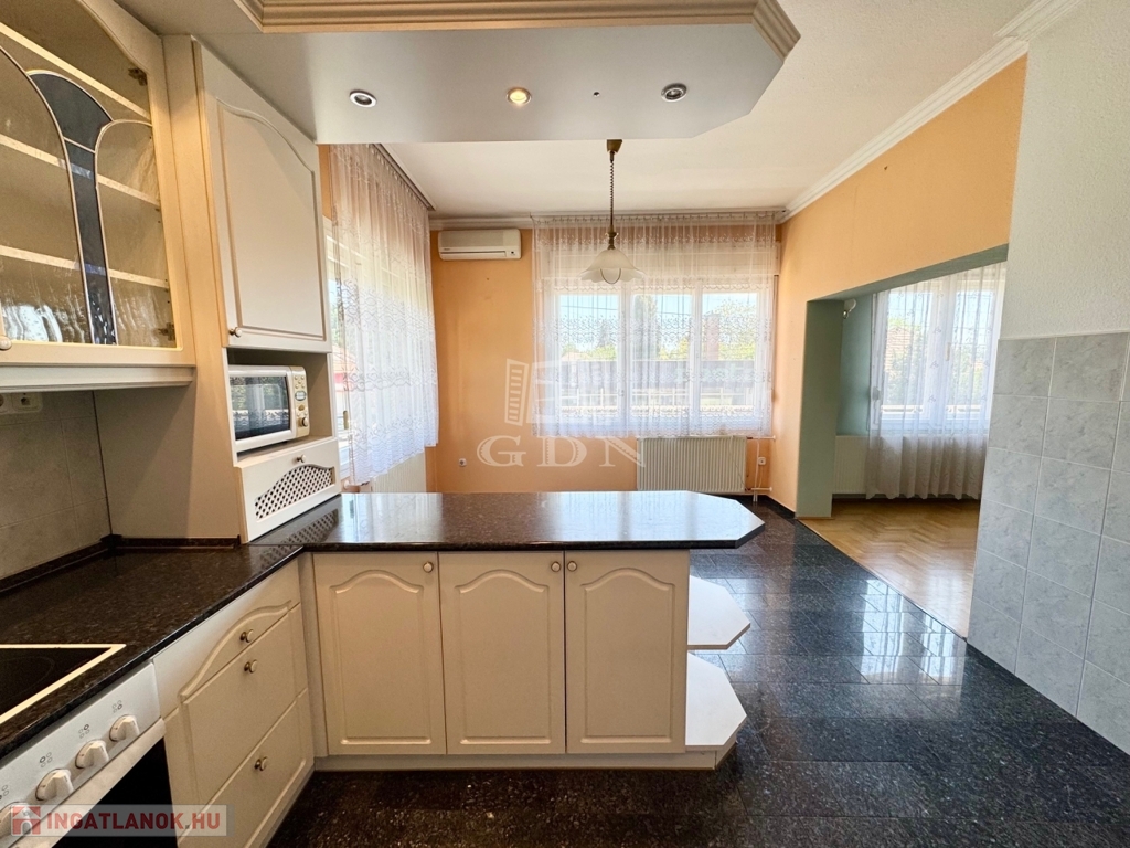 XVI. kerületben, Árpádföld szívében kitűnő ellátottság mellett, 504 nm-es összközműves telken 70-es években épült, 2 szintes, 164 nm-es lakóterületű, 5 szobás, valamint egy különálló részben felújításra szoruló, 43 nm-es összkomfortos 2 szobás melléképülettel bővített, így összesen 207 nm-es lakóterületű, 5+2 fél szobás, étkezőkonyhás, napos világos DK-i fekvésű, alacsony fenntartású, egyedi mérőórás, (2 db gázórával rendelkezik), dupla gázkazán fűtésű, jó állapotú TEHERMENTES, AKÁR AZONNAL BIRTOKBA VEHETŐ, ikerház fél, beépített gépesített konyhával, közvetlenül a fő épületből megközelíthető garázzsal, elektromos autó töltési lehetőséggel, gondozott kerttel rugalmas költözéssel eladó.