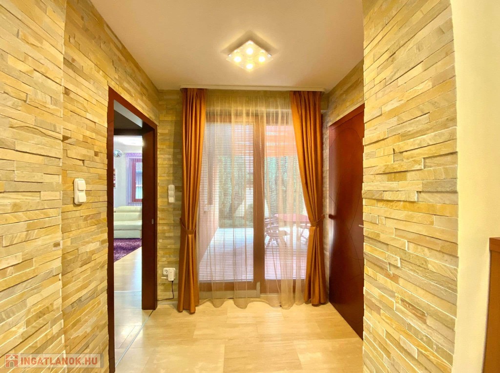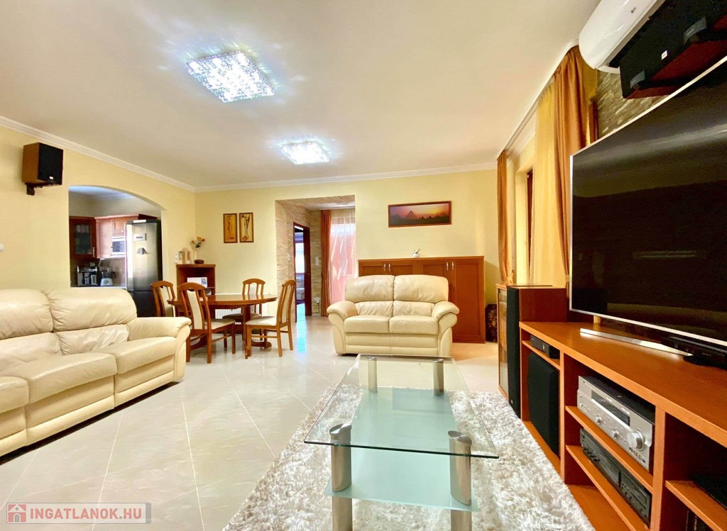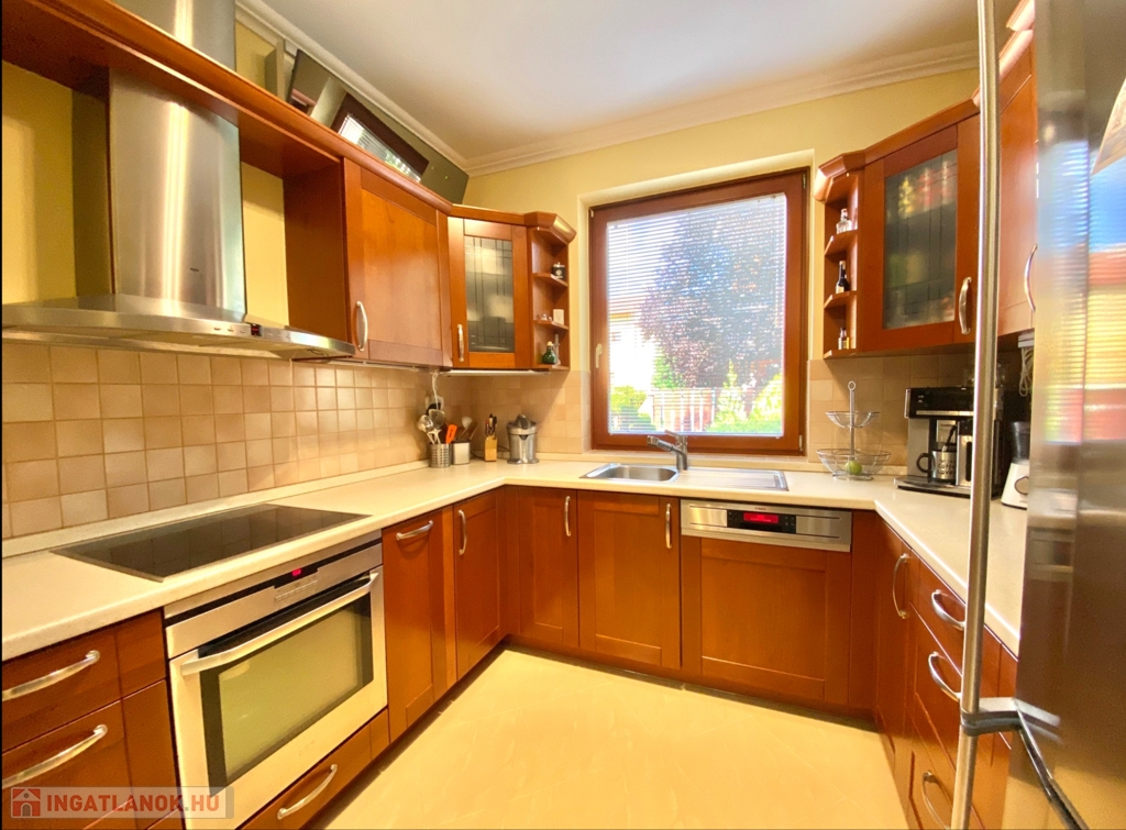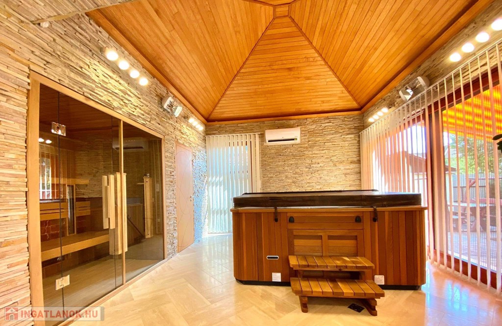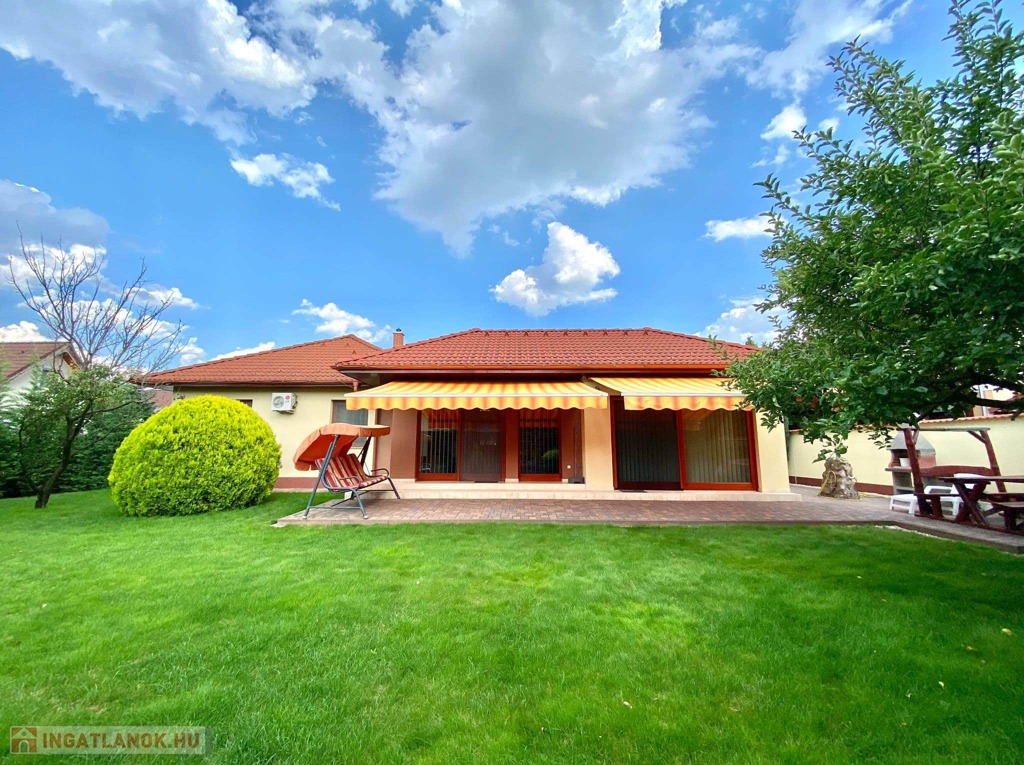 Budapest XVII kerületének Rákoshegyi csendes részén a Helikopter lakóparkban eladó egy földszintes bruttó 212 nm-s, nettó 180 nm alapterületű téglaépítésű ,5 szobás, minden igényt kielégítő luxus családi ház. Szauna, jacuzzi. A ház 2014-ben épült.