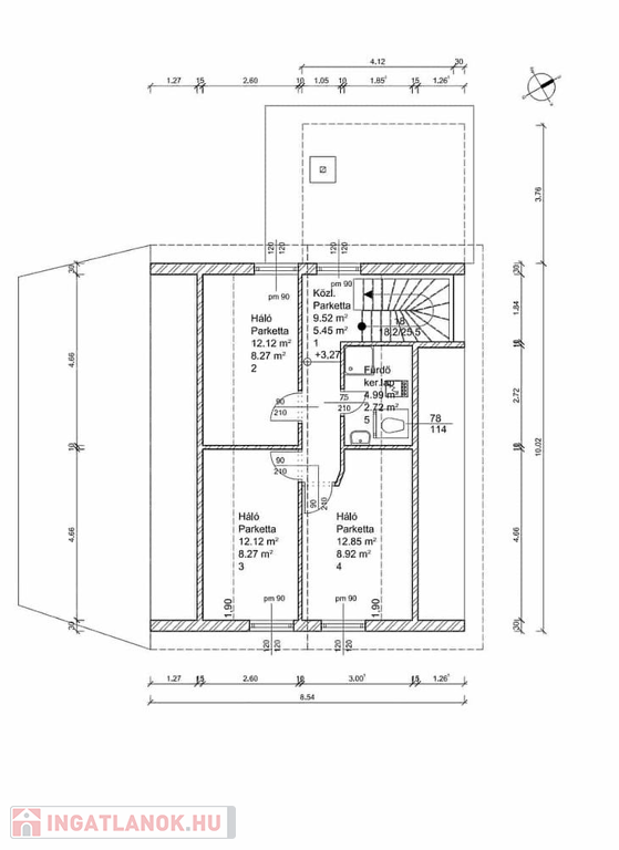 Emelet: ide lett tervezve 3 szoba és egy fürdőszoba.