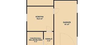 Szuterén: szoba, konyha + étkező, kádas fürdőszoba + mellékhelyiség, szerelőaknás garázs.
