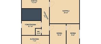 Földszint: 3 szoba, konyha, előszoba, kádas fürdőszoba, kertkapcsolatos terasz.