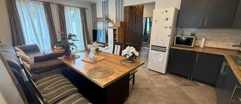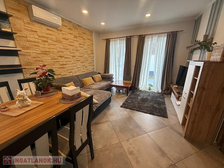 A fűtést és a meleg vizet kombi cirkó biztosítja, a nappaliban hűtő-fűtő klíma található.