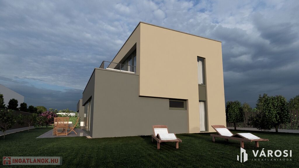 Csend, zöld környezet és modern kényelem – ezt kínálja ez a 134 m²-es, kétszintes, új építésű ikerház, melyhez 373 m²-es saját telekrész, 26 m²-es földszinti terasz és 18,64 m²-es emeleti tetőterasz tartozik.
