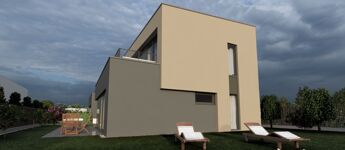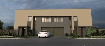 A két lakás csak a földszinten, a garázsnál kapcsolódik, a dupla főfal és légrés biztosítja a teljes akusztikus és fizikai leválasztást, így zavartalan, önálló élettér alakítható ki.