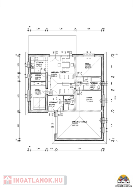 15 cm-grafit külső szigetelés, 3 rétegű műanyag nyílászárók, betoncserép, betonfödém + fafödém, fűtés:hőszivattyú + padlófűtés, H tarifás villanyóra, 30 cm-es főfalak,riasztó rendszer, térkövezés, klima,