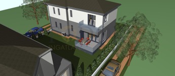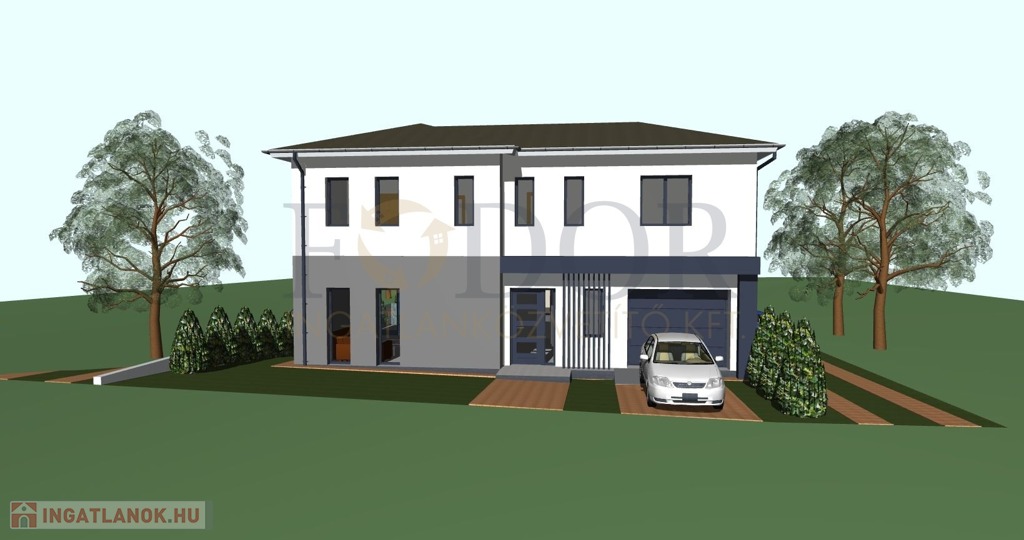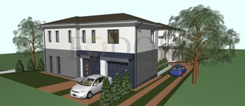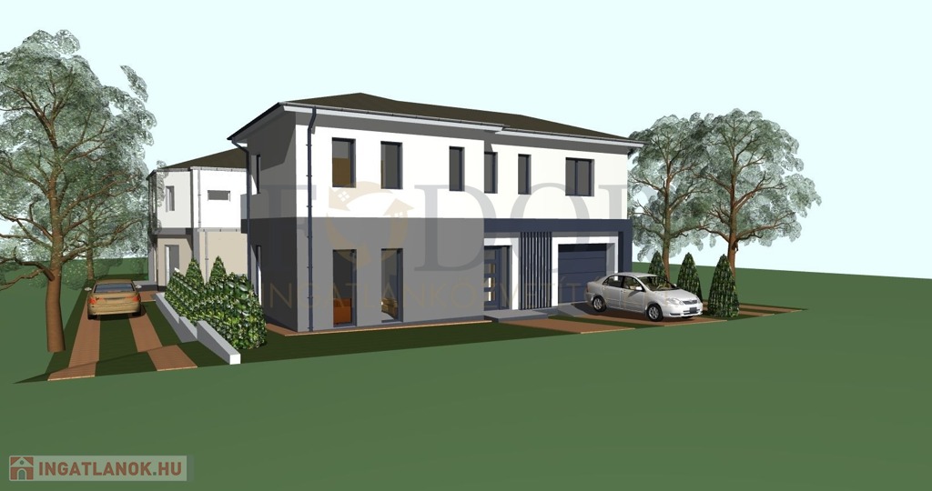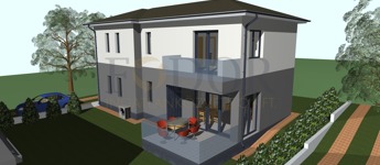 • Telekméret: Önálló családi ház 348 m², Ikerházak külön-külön: 425 m²