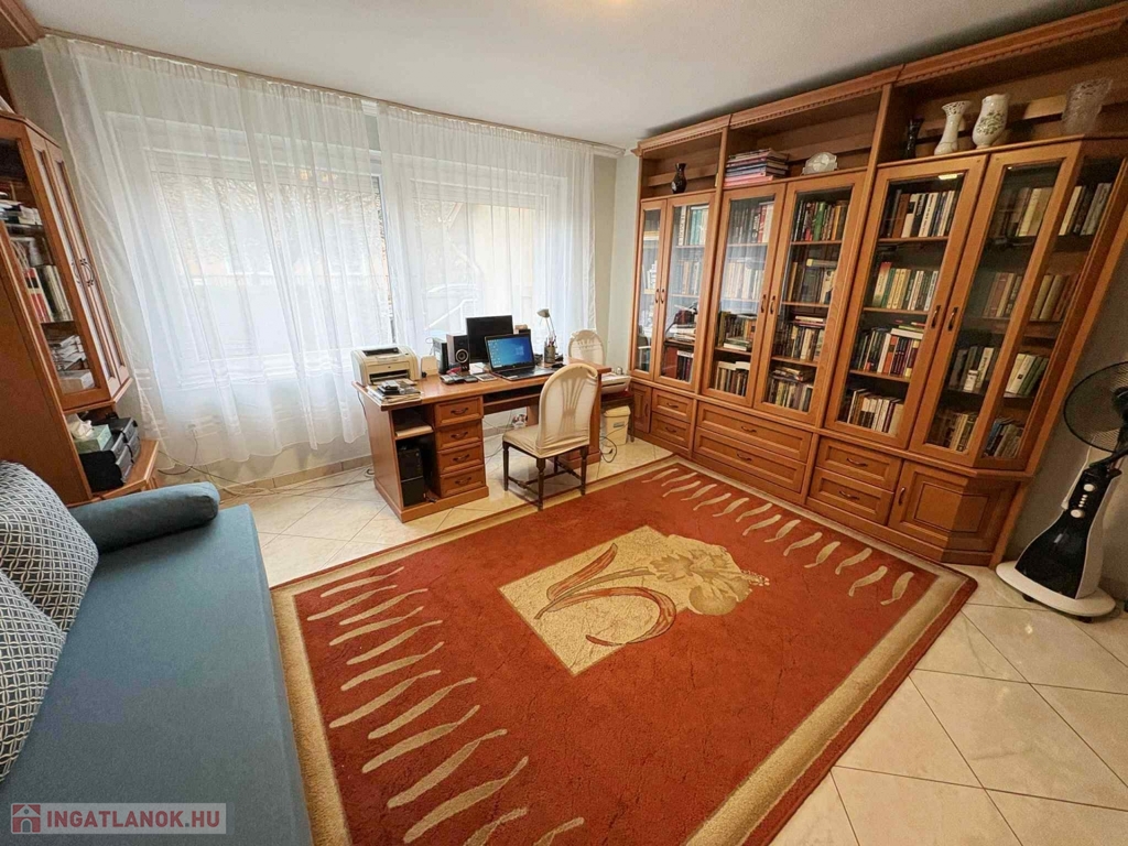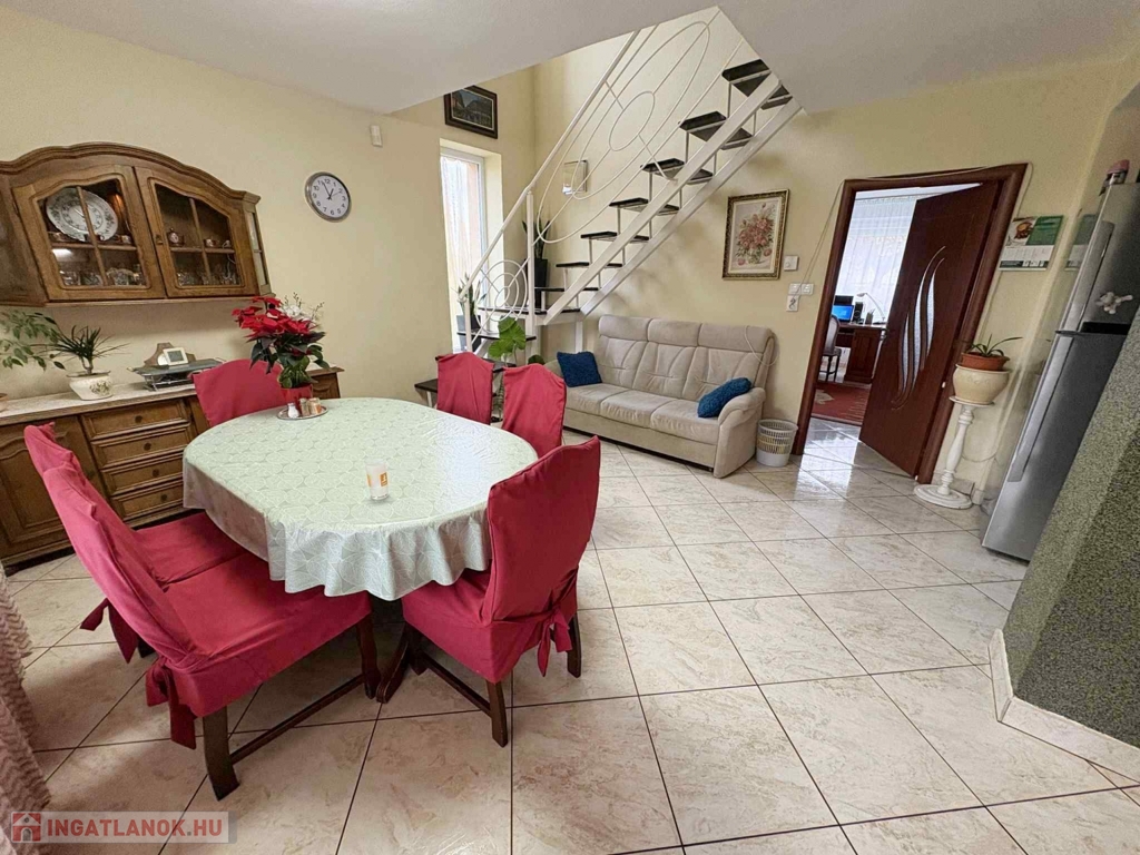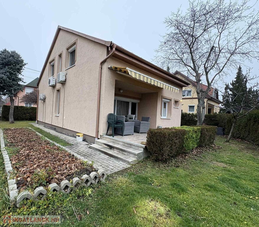 A XVIII. kerület Ganztelep kertvárosi részén, csendes, mellékutcában egy 477 m²-es telken fekvő, 130 m²-es, kétszintes, kifogástalan állapotú családi ház, két nappalival és három külön nyíló szobával, illetve két fürdőszobával eladó!