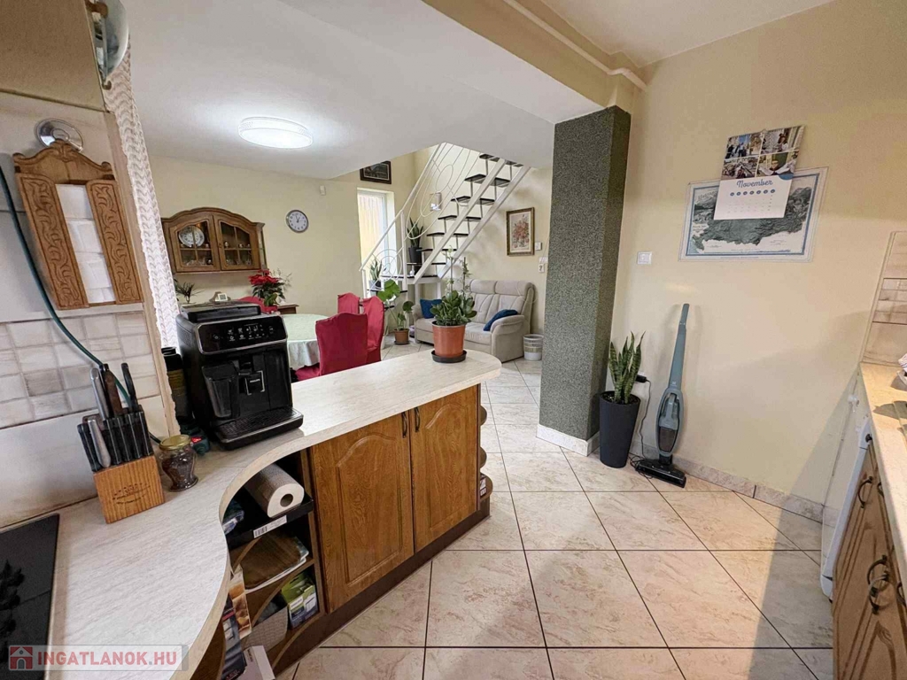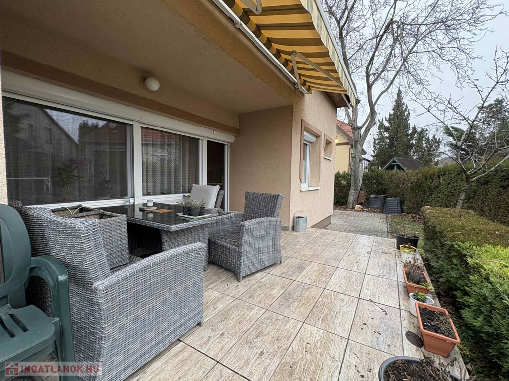 A fűtésről egy 2 éves kondenzációs gázkazán gondoskodik radiátoros hőleadással, rendelkezésre áll egy fatüzelésű kazán is, mely szintén a rendszerhez van kapcsolva, így bármikor használható. Az ingatlan gyakorlatilag költségmentes, egy friss tisztasági festés után azonnal költözhető. A nappaliból közvetlen kertkapcsolatunk van, és egy barátságos járólappal burkolt teraszra lépünk ki.