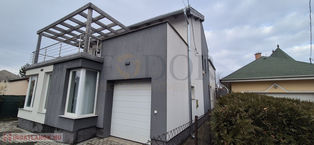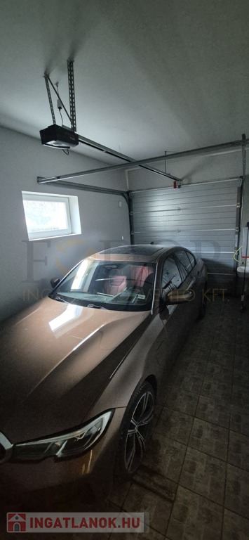 A házhoz tartozik egy elektromos kapuval ellátott garázs, amelyben egy nagyobb családi autó is kényelmesen elfér, és elektromos autó töltési kiállással is rendelkezik – a jövőre gondolva.