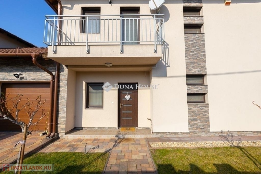 A kétszintes, elegáns elrendezésű otthon tágas, napfényben gazdag terekkel várja új tulajdonosát: