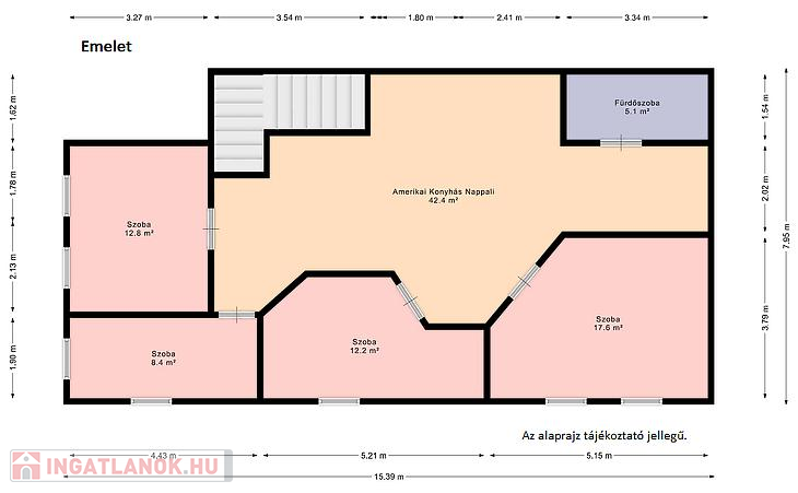 Az emeleten négy külön nyíló szoba, valamint egy második fürdőszoba WC-vel és konyha került kialakításra – ideális nagyobb család számára is.