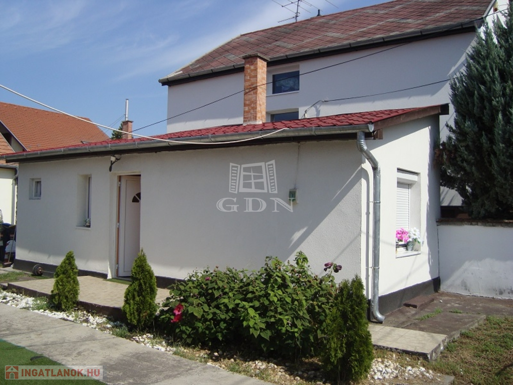 A nagyobbik ház a baloldali telekhatáron bruttó 60 m2-es, két külön nyíló szobás, külön fürdő és WC-vel és KÉT BEJÁRATTAL rendelkezik, így akár két részre is osztható.