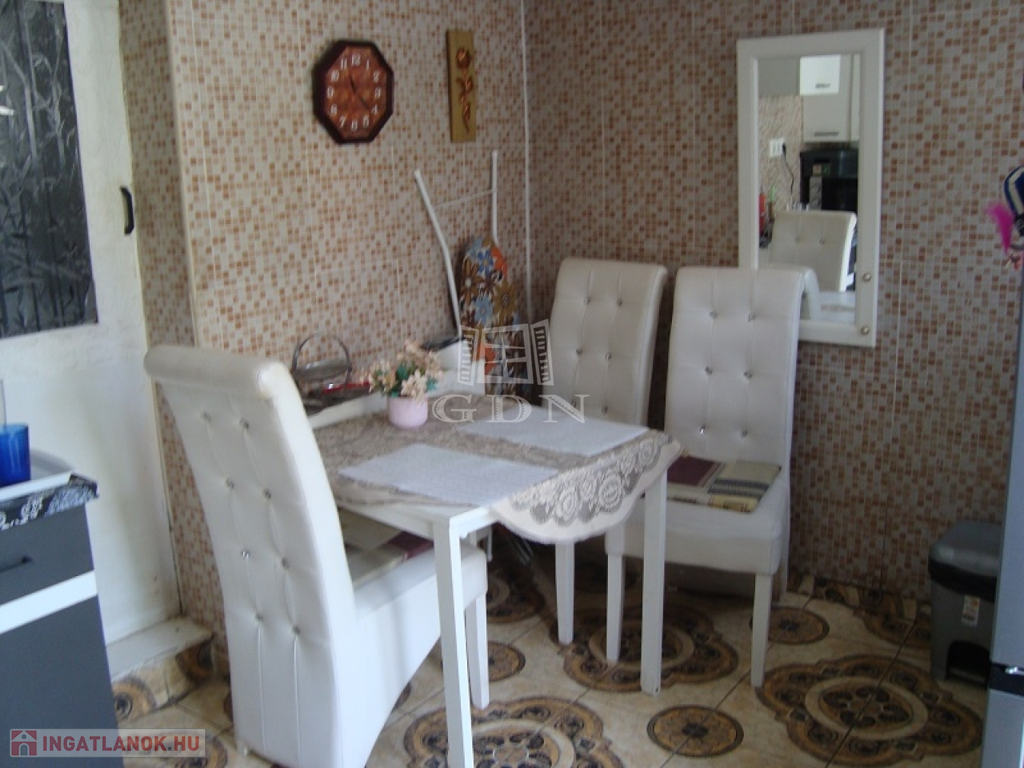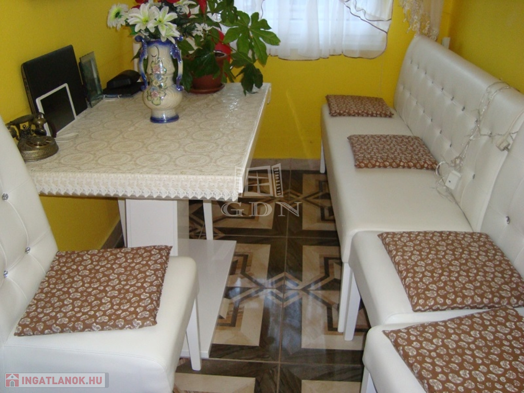 Szobái, a fürdő és WC egy belső kis közlekedőből nyilnak. A konyha egyik szobából és az udvarról is elérhető.