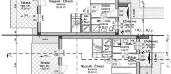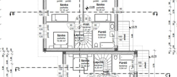 Műszaki:Vasbeton sávalap, dupla fal a lakások között , 30-as Porotherm tégla teherhordó falak, 10-es Porotherm válaszfalak, vasbeton közbenső és fa emeleti födém. A külső falak 12 cm-es Dryvit hőszigeteléssel, az emeleti födém 30 cm-es (fújható cellulóz )hőszigeteléssel készül, cserép héjazással. Nyílászárók(Schüco típusú ) 3 rétegű hő- és hangszigetelő thermo üveggel, kívül,belül fehér színben. Fűtés és a meleg víz hőszivattyúról H tarifával, mindenhol padlófűtés . 1 darab hűtő -fűtő klíma 3,5KW-os nappaliban , összesen 5 db. klíma kiállás a hálószobákban,nappaliban, lépcsőházban.