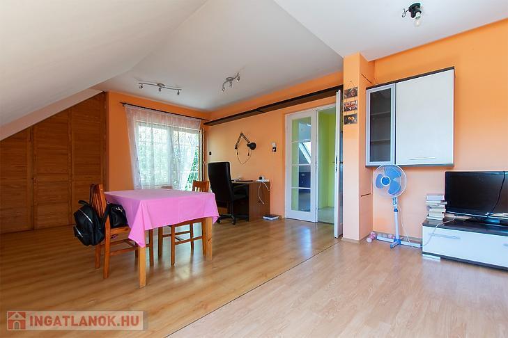 Az ingatlan elosztása praktikus, a nagy méretű szobák pedig kényelmes életteret biztosítanak a család minden tagja számára. Jelenleg az emeleti és a földszinti részhez is van kialakított külön bejárat, konyha és fürdőszoba.