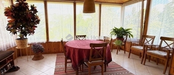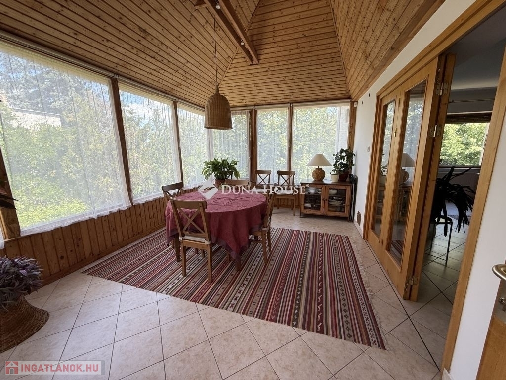 Az emeleti lakrész kandallós nappali plusz 2 normál méretű szobával és gardrób helyiséggel, konyhával, fürdőszobával és egy körbeüvegezett étkező-előtérrel került kialakításra. Ezen a szinten 2 beltéri klíma is beépítésre került.