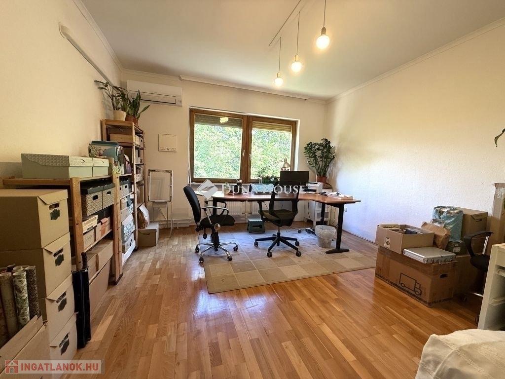 Az alsó szinten, amely a Hollandi út felől földszinti lakrész önálló bejárattal, 2 nagyméretű szoba, egy háztartási és/vagy fürdőszoba, zuhanyzós mellékhelyiség, kazánház, előszoba és közlekedő résszel, beépített bútorral került kialakításra.