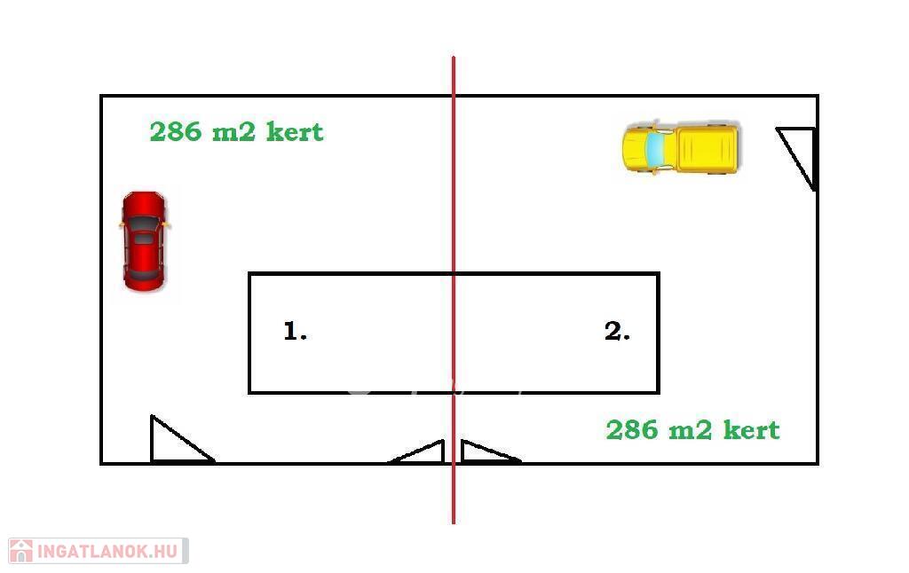 Az ikerház egy telekre épül, társasházi alapító okirattal, saját albetétesített HRSZ-al, használatbavételi engedéllyel kerülnek átadásra a házak. A kert középen elválasztva, külön bejáratokkal, saját fogyasztásmérőkkel ellátva vehetik át az első Tulajdonosok. A gépkocsi tároló gyeptéglás lesz.