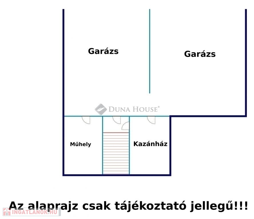 Szuterén:Dupla garázs. Praktikus műhely, amely barkácsolási lehetőséget is biztosít.Fűtési és hűtési rendszer, az egész házat padlófűtés melegíti, amelyet gázkazán működtet.