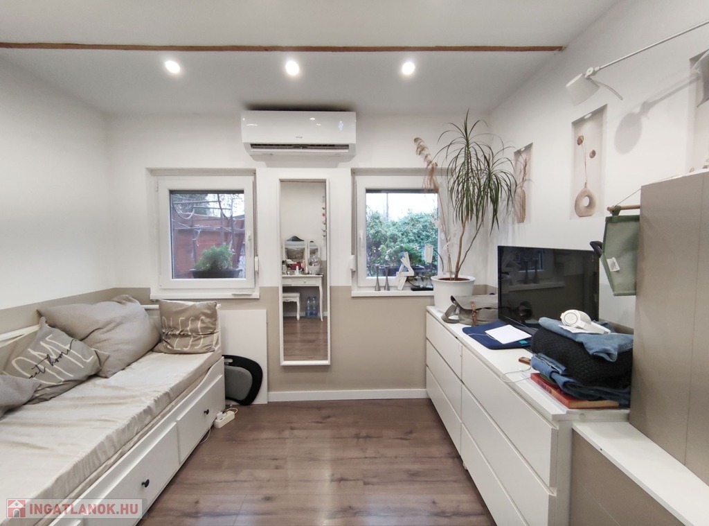 Megvételre kínálok, Budapesten a közismert Molnár-szigeten a Ráckevei (Soroksári)-Duna ágon igazán csendes helyen, a Duna parttól 1 utcányira, 537 nm-es méretű osztatlan közös telken, melyből 270 nm-es elkerített területen 48 nm-es könnyűszerkezetes, szigetelt, tetőtér beépítéses 1 egész és 2 félszobás, 2022-ben felújított kétszintes házat, gépkocsibeállóval, 10 nm-es fedett, nyitható terasszal, 15 nm-es kerti tárolóval, kivett zártkerti művelés alól kivett terület, gazdasági épület besorolással rendelkező ingatlant gondozott kerttel.