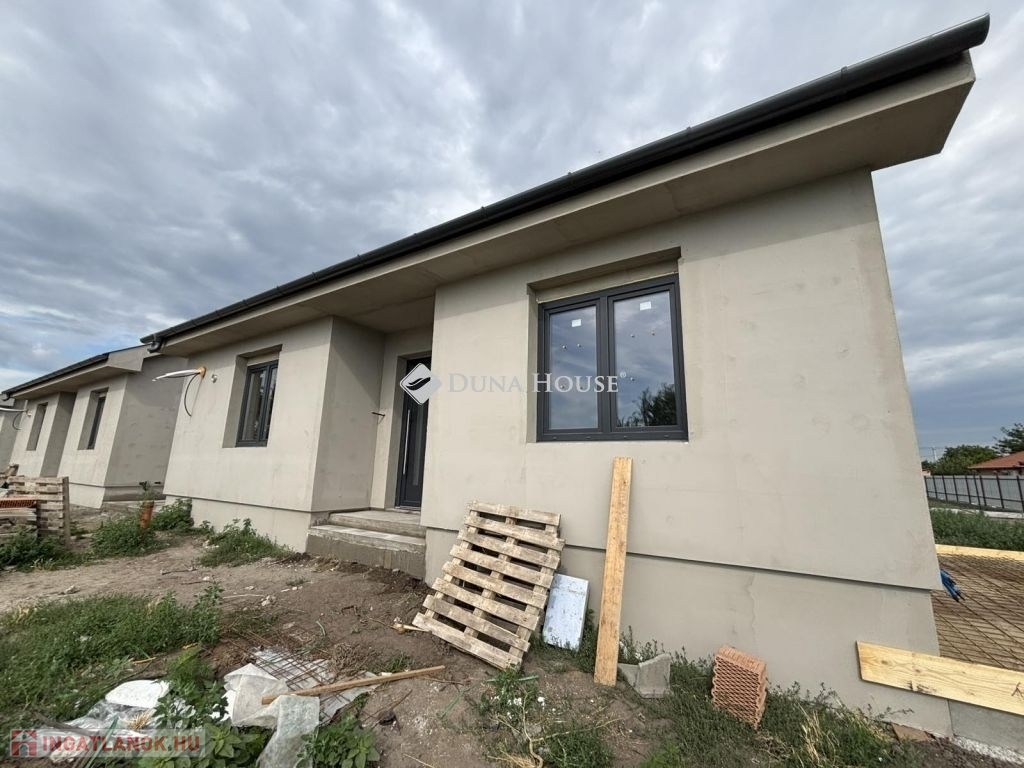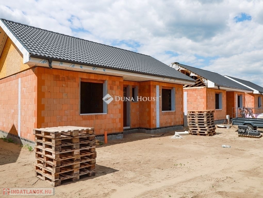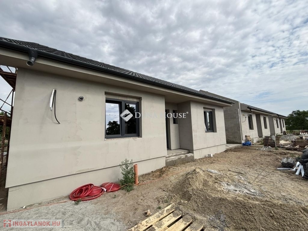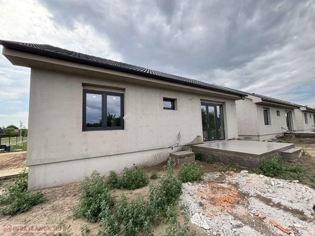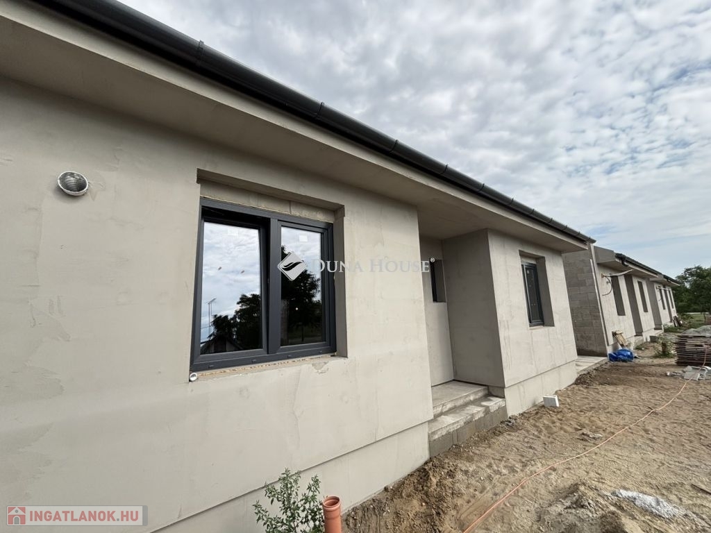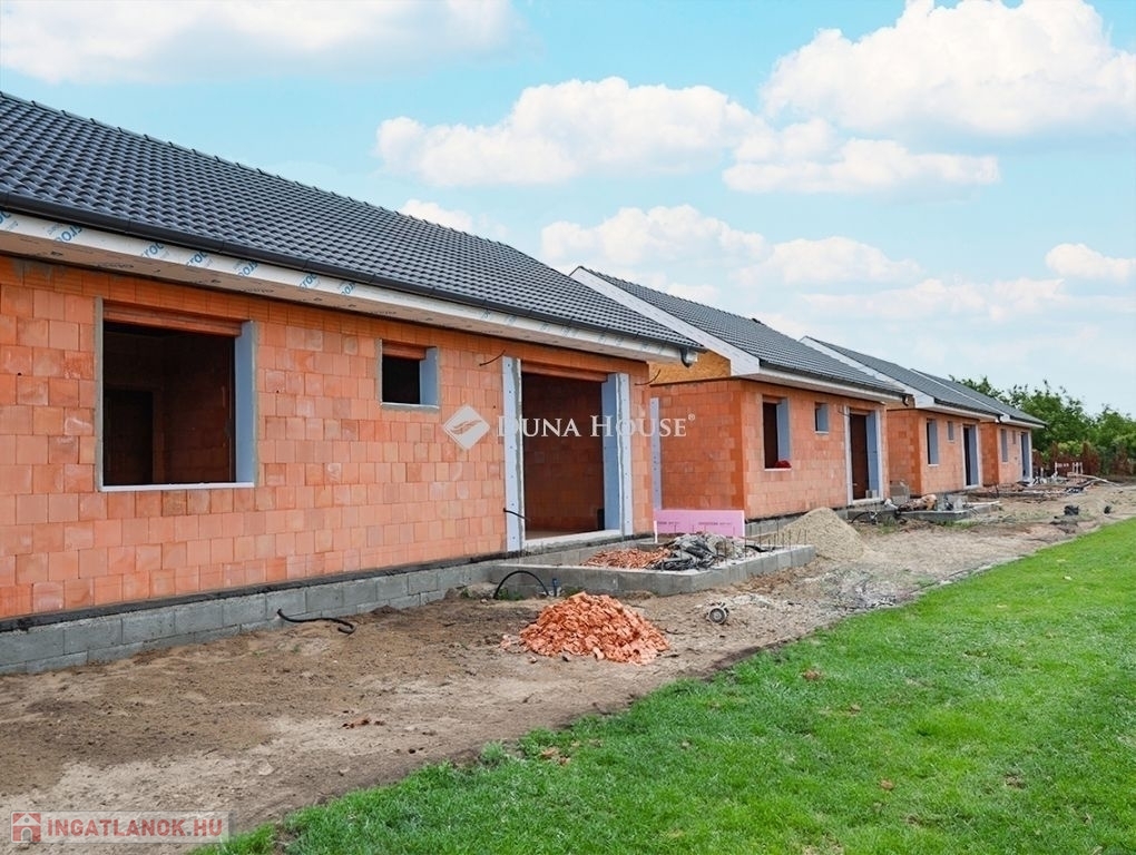 Eladásra kínálunk Cegléd, Nyíl közben egy 65 m²-es, új építésű családi házat, amely hőszivattyúval, fedett gépkocsibeállóval és prémium műszaki tartalommal rendelkezik.A 400 m²-es telek a vételár részét képezi, és az osztatlan közös tulajdonhoz ügyvédi használati megosztás is tartozik. A teljes, 2940 m²-es területen 4db sorházi jellegű családi ház épül. Minden ingatlanhoz saját 400 m²-es telekrész, közös elektromos kapu, fedett beálló, valamint egy térkövezett parkolóhely is tartozik.A kivitelezés már megkezdődött, a várható átadás pedig 2025. november. A kivitelező KÖTBÉR-GARANCIÁT IS VÁLLAL!A projekt kivitelezői ELŐFINANSZÍROZÁSSAL is megvásárolható (nem kell előre fizetni), tehát mindig az elkészült, átadott ütem után kell fizetni, illetve a kivitelező szerződésben vállalja, hogy ÁR GARANCIÁT vállal az építményre.A családi ház nettó alapterülete 65 m2, amely tartalmaz: 3 szobát (amerikai konyha-nappali-étkező + 2 hálószoba); 1 fürdőszobát Fedett gépkocsi beállót és egy előszobát.Műszaki tartalom: Teherhordó falazat: Wienerberger Porotherm Profi 30 X-Therm tégla Homlokzati hőszigetelés: 15 cm Tetőhéjazat választható: Leier Toscana tetőcserép választható színben Külső nyílászárók: 3 réteg üvegezésű, kívül antracit, belül fehér prémium Gealan S8000 külső nyílászárók, 36 mm-es üvegezéssel + antracit, alumínium redőnyök + antracit műkő párkány Válaszfal: Wienerberger Porotherm 10 tégla válaszfal Hidegburkolat választható: 6500 Ft / m2 Melegburkolat választható: 6000 Ft / m2 Szaniterek választható: (kád, zuhanykabin, csaptelep stb.) 460000Ft-ig Bejárati ajtó választható: Colorplast standard betéttel Teraszajtó: Dupla szárnyas Beltéri ajtó: Borovi Szicília (dekorfóliás) választható színben Gépészet: Bosch 3400 levegő-víz hőszivattyú vizes padlófűtésselAz ár kulcsrakész állapotban történő átadással értendő, konyhabútor és lámpatestek nélkül!Közművek: Gáz: nincs Villany: ingatlanban Csatorna: derítő kerül kiépítésre Víz: ingatlanbanAjánlom mindazoknak, akik Cegléd csendes, új-építésű környezetben szeretnének élni.