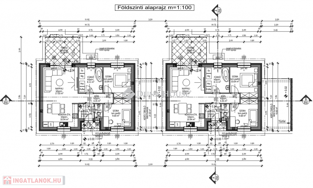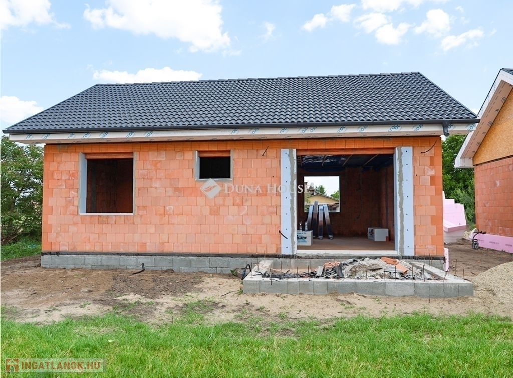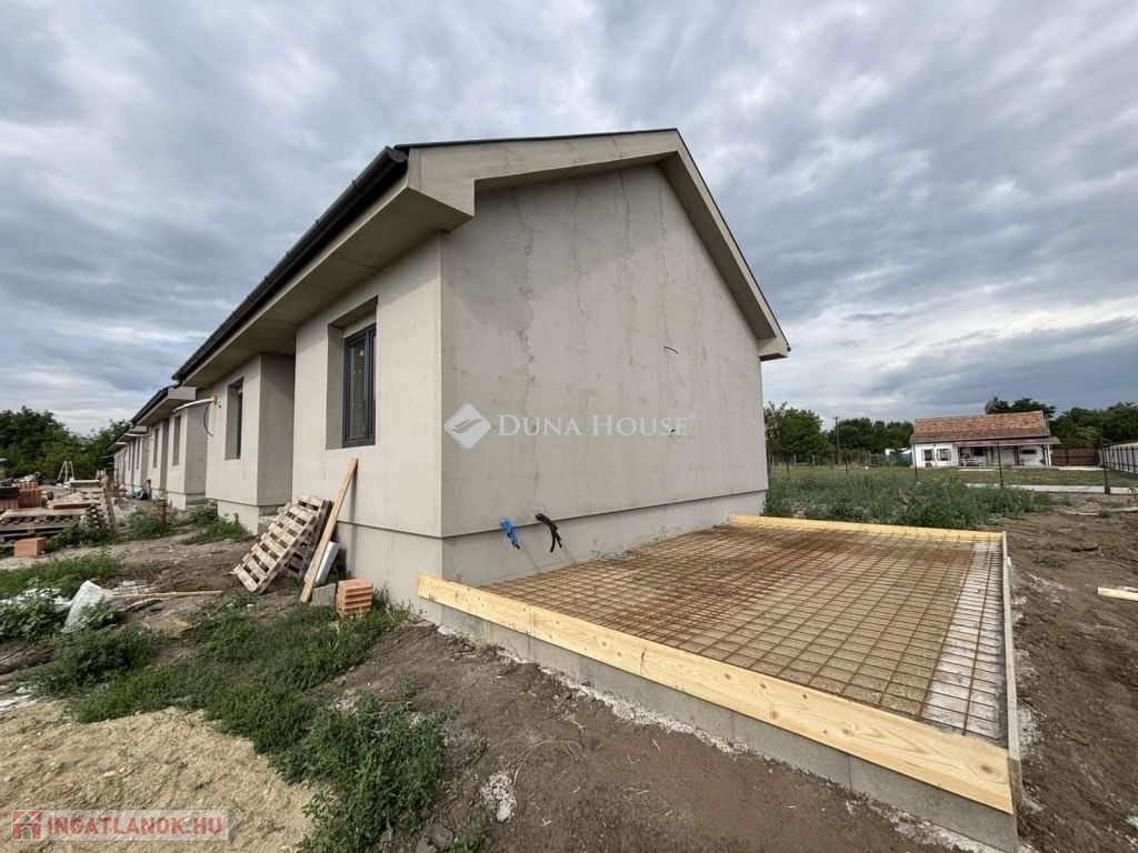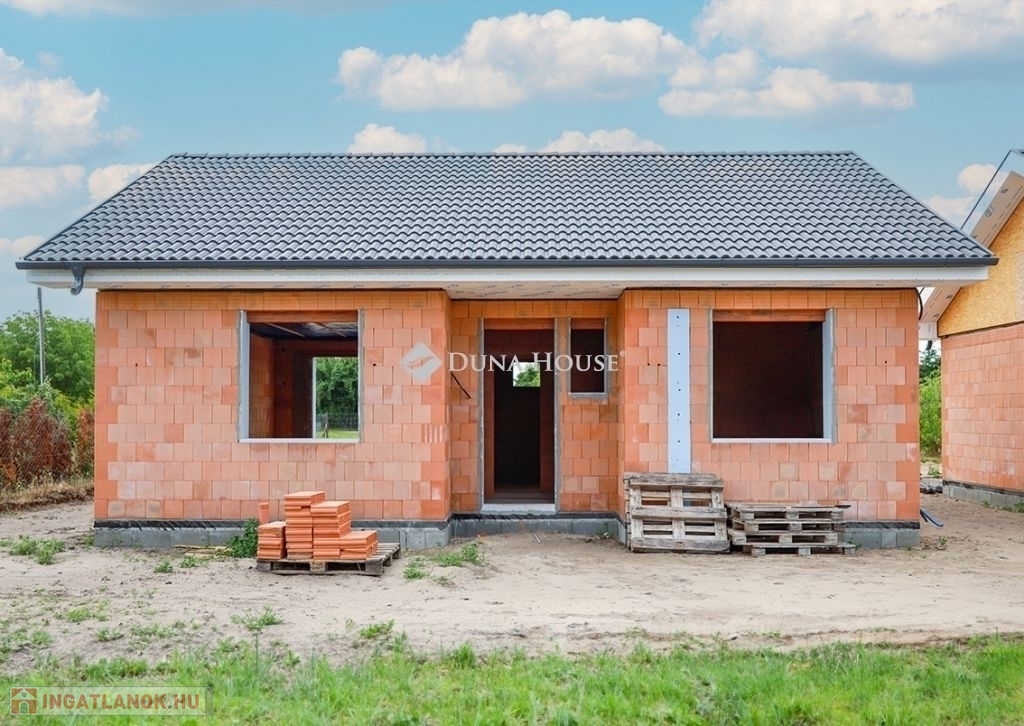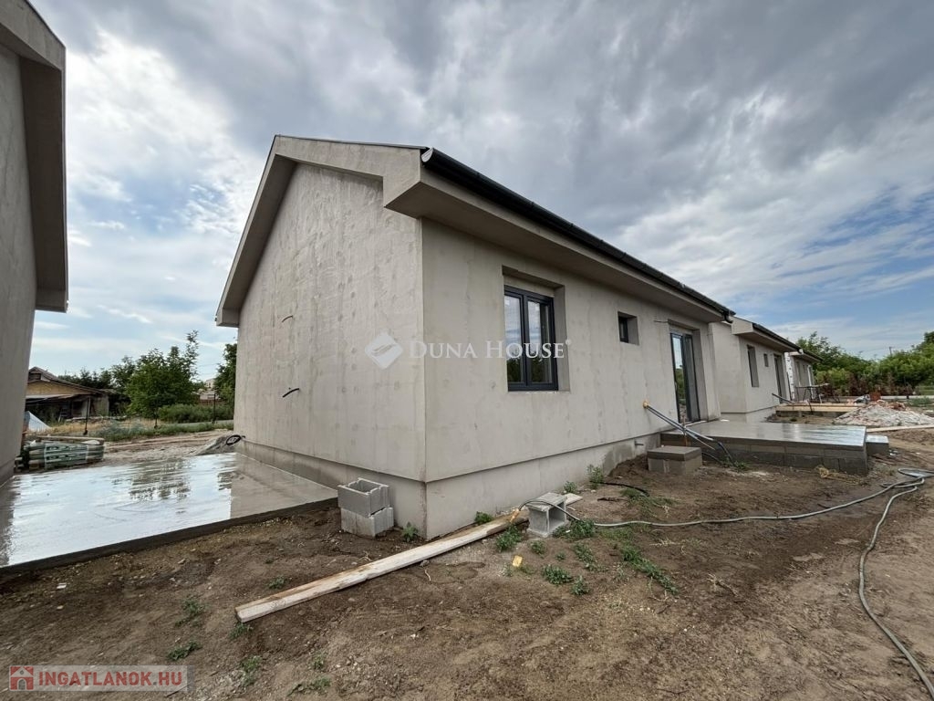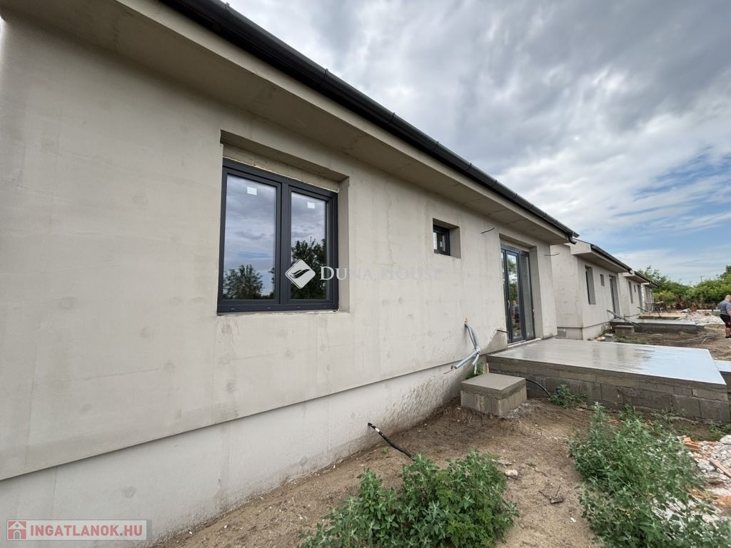 Eladásra kínálunk Cegléd, Nyíl közben egy 65 m²-es, új építésű családi házat, amely hőszivattyúval, fedett gépkocsibeállóval és prémium műszaki tartalommal rendelkezik.A 400 m²-es telek a vételár részét képezi, és az osztatlan közös tulajdonhoz ügyvédi használati megosztás is tartozik. A teljes, 2940 m²-es területen 4db sorházi jellegű családi ház épül. Minden ingatlanhoz saját 400 m²-es telekrész, közös elektromos kapu, fedett beálló, valamint egy térkövezett parkolóhely is tartozik.A kivitelezés már megkezdődött, a várható átadás pedig 2025. november. A kivitelező KÖTBÉR-GARANCIÁT IS VÁLLAL!A projekt kivitelezői ELŐFINANSZÍROZÁSSAL is megvásárolható (nem kell előre fizetni), tehát mindig az elkészült, átadott ütem után kell fizetni, illetve a kivitelező szerződésben vállalja, hogy ÁR GARANCIÁT vállal az építményre.A családi ház nettó alapterülete 65 m2, amely tartalmaz: 3 szobát (amerikai konyha-nappali-étkező + 2 hálószoba); 1 fürdőszobát Fedett gépkocsi beállót és egy előszobát.Műszaki tartalom: Teherhordó falazat: Wienerberger Porotherm Profi 30 X-Therm tégla Homlokzati hőszigetelés: 15 cm Tetőhéjazat választható: Leier Toscana tetőcserép választható színben Külső nyílászárók: 3 réteg üvegezésű, kívül antracit, belül fehér prémium Gealan S8000 külső nyílászárók, 36 mm-es üvegezéssel + antracit, alumínium redőnyök + antracit műkő párkány Válaszfal: Wienerberger Porotherm 10 tégla válaszfal Hidegburkolat választható: 6500 Ft / m2 Melegburkolat választható: 6000 Ft / m2 Szaniterek választható: (kád, zuhanykabin, csaptelep stb.) 460000Ft-ig Bejárati ajtó választható: Colorplast standard betéttel Teraszajtó: Dupla szárnyas Beltéri ajtó: Borovi Szicília (dekorfóliás) választható színben Gépészet: Bosch 3400 levegő-víz hőszivattyú vizes padlófűtésselAz ár kulcsrakész állapotban történő átadással értendő, konyhabútor és lámpatestek nélkül!Közművek: Gáz: nincs Villany: ingatlanban Csatorna: derítő kerül kiépítésre Víz: ingatlanbanAjánlom mindazoknak, akik Cegléd csendes, új-építésű környezetben szeretnének élni.