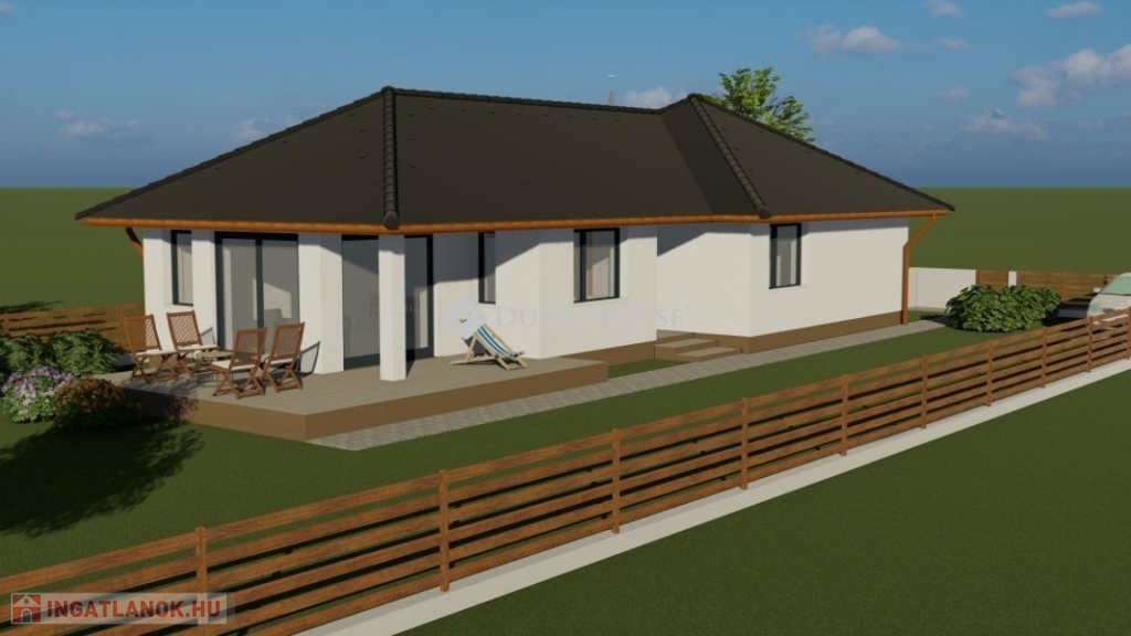 Kialakítása: 3 szoba, tágas nappali+konyha étkező, fürdő, külön wc, kamra, háztartási helyiség, közlekedő, előtér, TÁGAS 30 m2-es terasz (ebből 6.56 m2 fedett terasz)