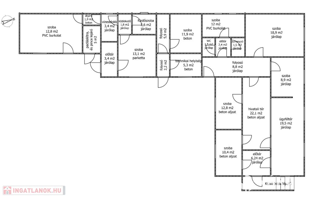 Cereden, 197 m2-es hasznos alapterületű, egyszintes, családi ház eladó. A ház statikailag kiváló állapotú. A tető cseréppel fedett, ácsolata hibátlan. Az ingatlan korábban hivatalként, műszaki állomásként, és szolgálati lakásként működött, ezért több részre szekcionált. A belső burkolatok cserélendők, felújítandók. Az ablakok egy része már új műanyag nyílászáró. Az épület jól variálható belső terekkel rendelkezik, csak a külső főfalai teherhordó falak, ezért belül tetszés szerint átalakítható. Egyaránt kialakítható belőle nagy villalakás, panzió, apartmanház, vagy vadászház. Összközműves, gázkazános központi fűtéssel rendelkezik. Két nagy, 28, és 14 m2-es, száraz pince található alatta. Az udvarra széles kapubejárón keresztül lehet behajtani, több autó tárolására, vagy nagy garázs építésére is megfelelő térrel rendelkezik. A ház mellett egy elbontott melléképület jó állapotú betonalapjára pillanatok alatt telepíthető egy könnyűszerkezetes építmény, fedett grillező, vagy garázs.