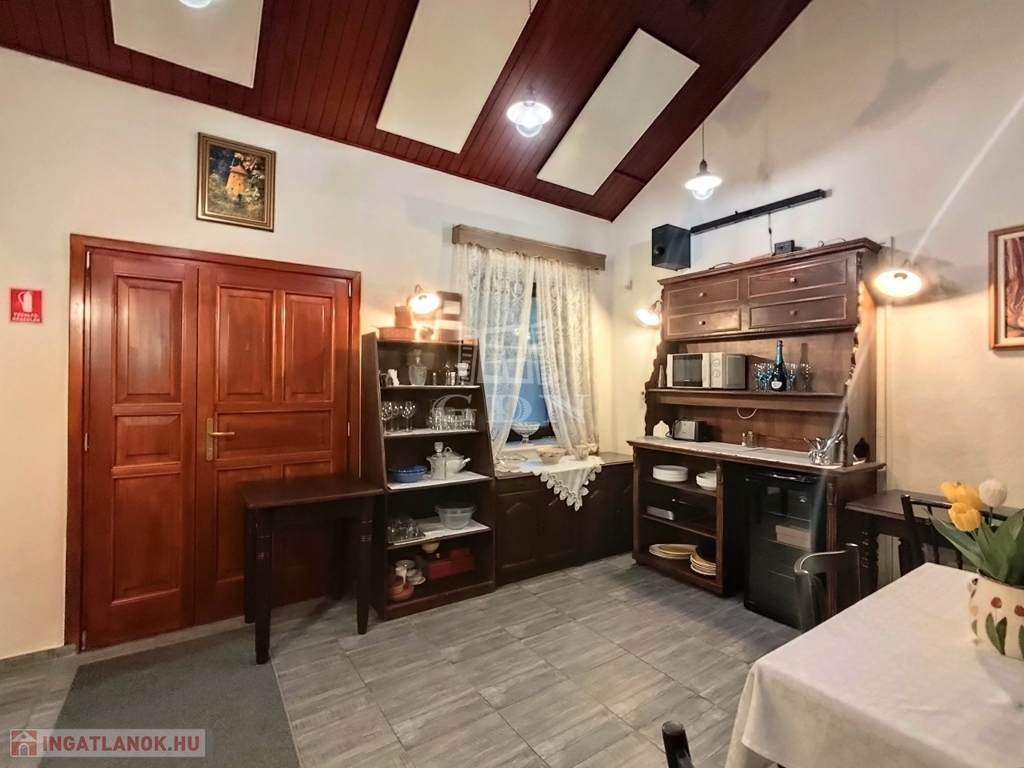 Az impozáns ingatlan tágas fogadótérrel rendelkezik, jelenleg nappali-étkezőként funkcionál ez a hatalmas tér, mely az otthon lelke is egyben. Emellett egy jól felszerelt konyha segíti a mindennapokat.