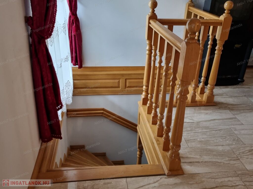 A felső szinten van 2 konyha, 4 hálószoba mindegyik saját  fürdőszobával,  2 WC, és a központi helyiség, egy hatalmas nappali a kert felé néző terasz kapcsolattal. Igényes, berendezése egységet képez, stílusban , színben  minden harmonizál. A képek magukért beszélnek!