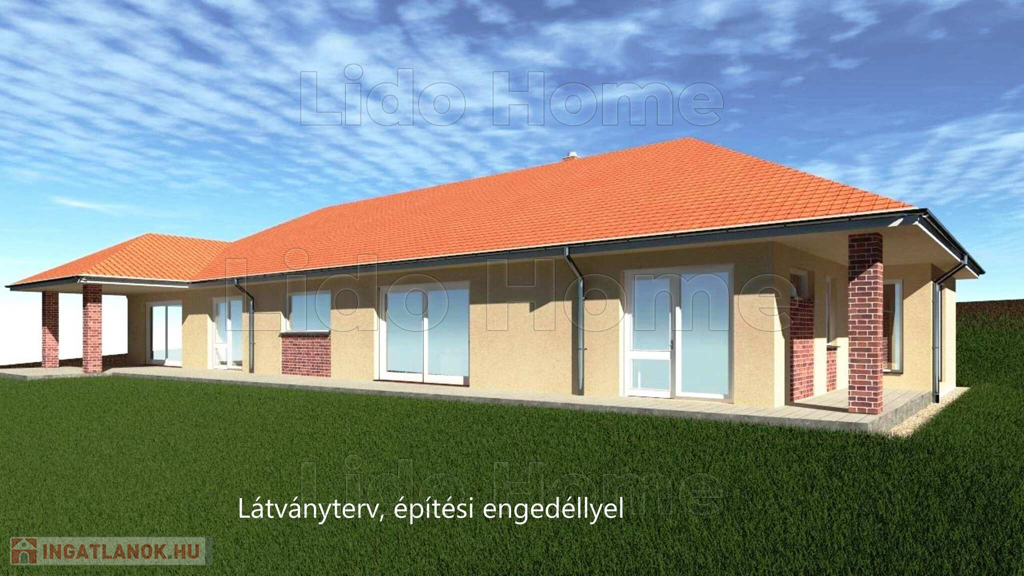 A vételára az ingatlannak tartalmazza az építészeti tervet és az építési engedélyt egy modern, földszintes lakóház megépítésére.