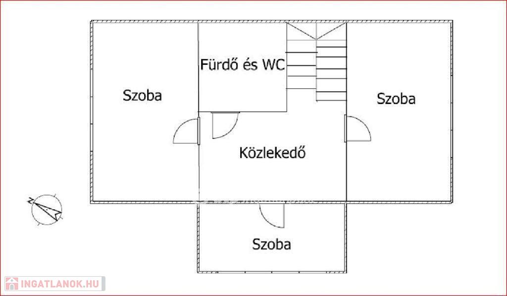 Az emeleten található 3 hálószoba, zuhanyzós fürdőszoba WC-vel, előszoba beépített szekrényekkel.